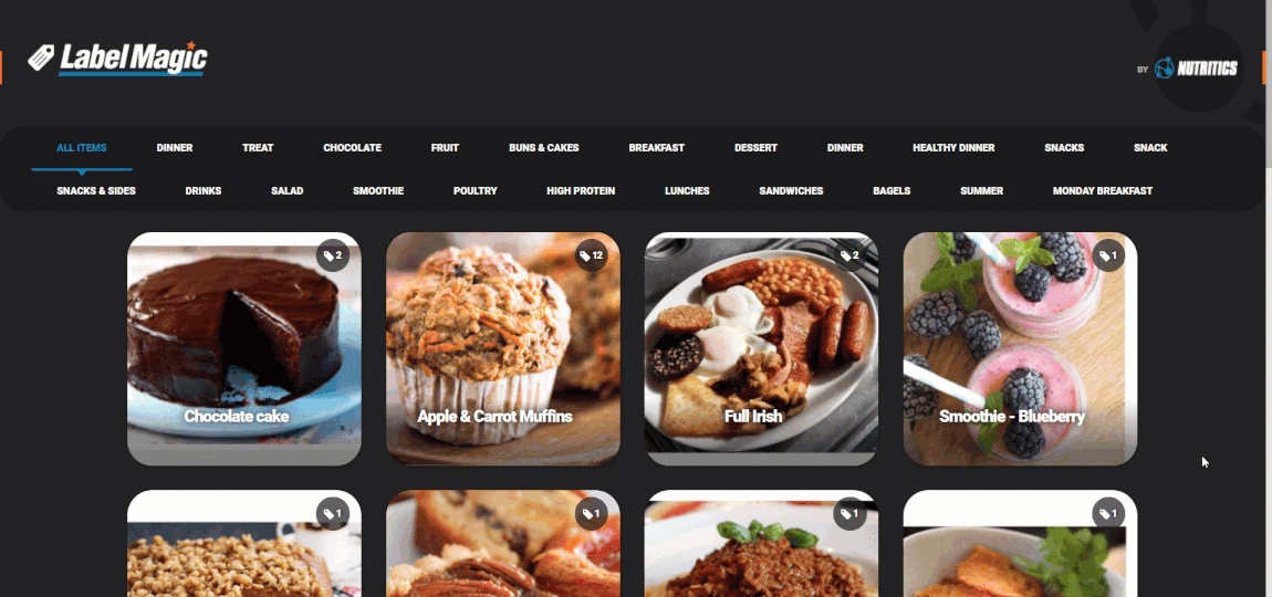 Enables a separate dashboard to view and print labels with one touch. Control your recipes and label layouts in real time from your Nutritics account, and allow staff to print on-demand in LabelMagic, wherever they need it