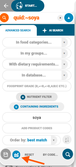 An insights chart showing all recipes that use ingredients matching your search will then open:
