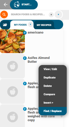 Usage reports can also be used in Like Searches to locate items with similar names or properties. To generate a usage report for this, search for the desired food > right click > Find / Replace:
