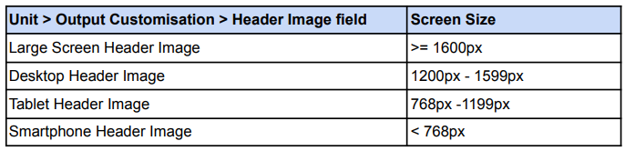 Please Note: where ‘Header Image’ is supported in Web Template, different header images are used based on screen width from which the menu is being accessed.