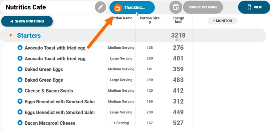 Load any menu here to begin tracking by clicking the ‘LIVE NOW’ button in the top toolbar:
